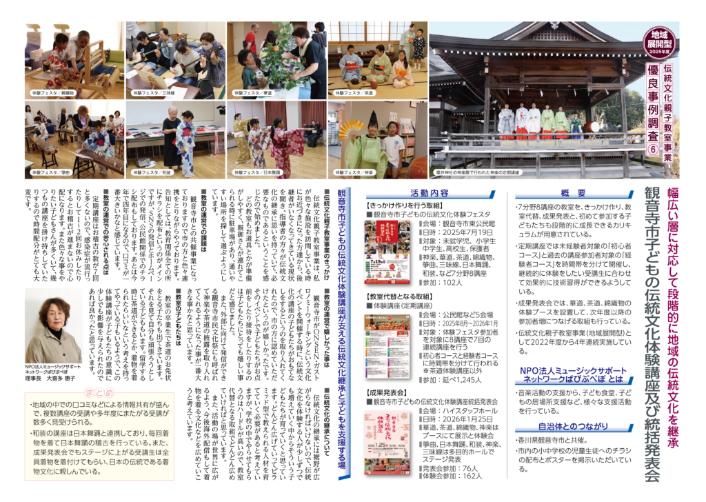 ぱぴぷぺぽが主催として継続して活動している“観音寺市子どもの伝統文化体験講座及び統括発表会”について、この度文化庁より伝統文化親子教室事業の優良事例で紹介されました![]()
